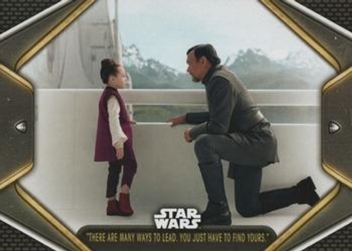 The "There are many ways to lead You just have to find yours" 2023 Topps Star Wars: Obi-Wan Kenobi #17 Base card is 1 of 13 "There are many ways to lead You just have to find yours"'s card variations in the 2023 Topps Star Wars: Obi-Wan Kenobi set being tracked by Sports Card Investor, including Blue, Purple, Red /99, Green /75, and Orange /50.