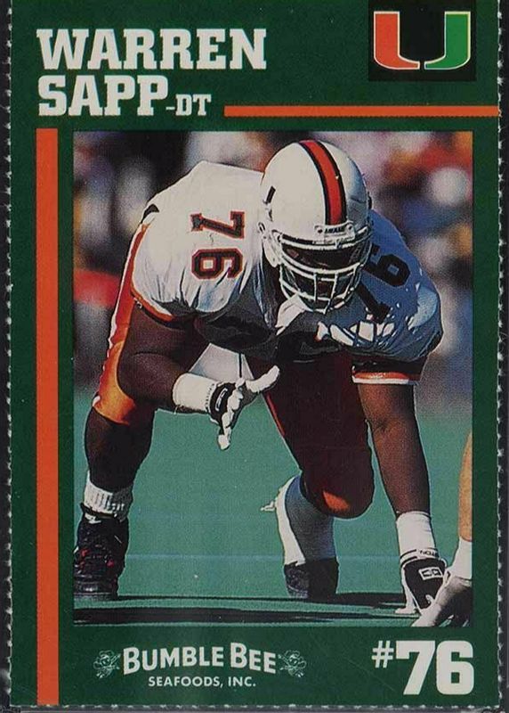 The top trending card in 1994 Miami Bumble Bee is currently Warren Sapp 1994 Miami Bumble Bee Base.