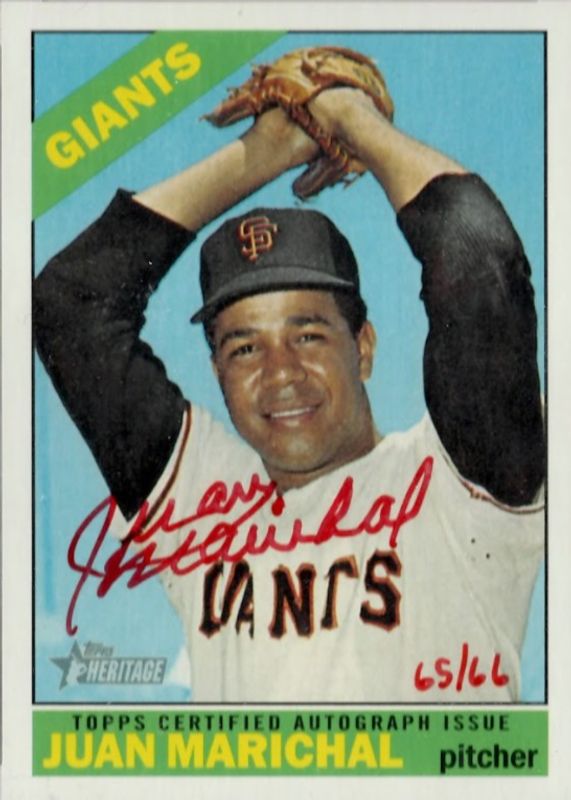 The top trending card in 2015 Topps Heritage is currently Juan Marichal 2015 Topps Heritage #ROA-JM Real One Autographs - Red Ink /66.