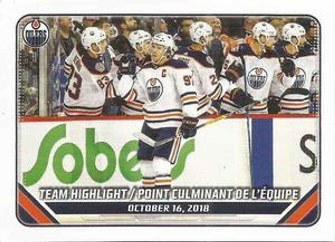 The 2018 19 Team Highlight 2019 Topps Stickers #189 Base card is 1 of 31 2018 19 Team Highlight's card variations in the 2019 Topps Stickers set being tracked by Sports Card Investor, including #104 Base, #121 Base, #138 Base, #155 Base, and #172 Base.