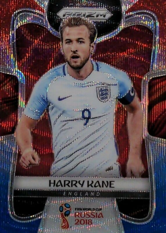 The top trending card in 2018 Prizm World Cup is currently Harry Kane 2018 Prizm World Cup #62 Red & Blue Wave.
