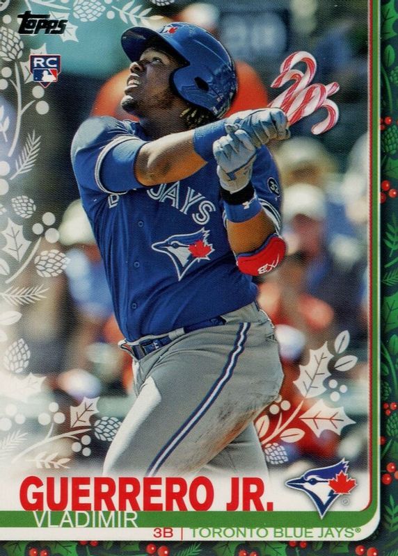 The top trending card in 2019 Topps Holiday is currently Vladimir Guerrero Jr. 2019 Topps Holiday #HMW167 SP Variation (Candy Canes).