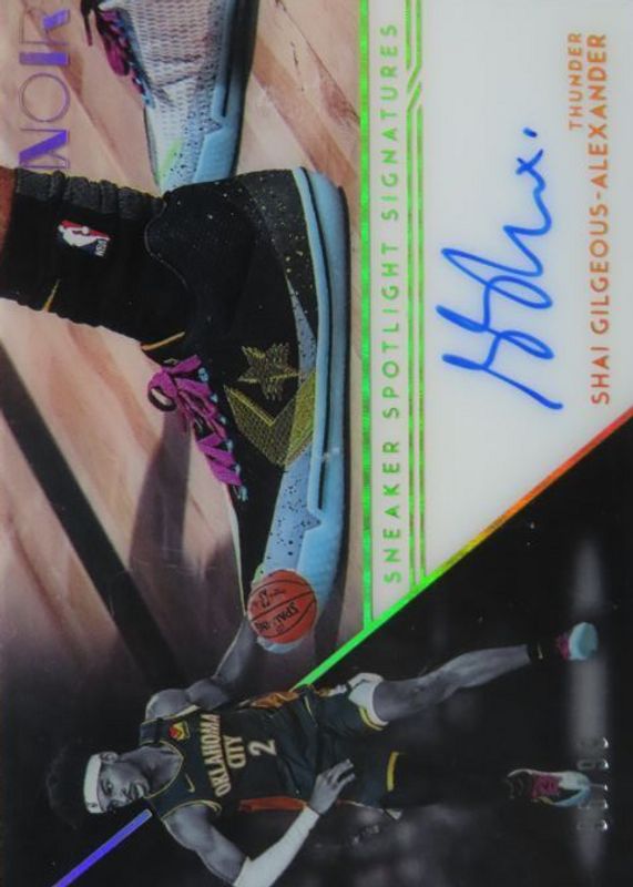 The top trending card in 2020 Noir is currently Shai Gilgeous-Alexander 2020 Noir #SSP-SGA Sneaker Spotlight Signatures /99.