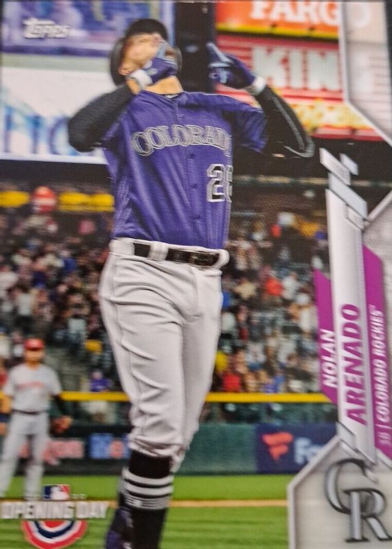 The top trending card in 2020 Topps Opening Day is currently Nolan Arenado 2020 Topps Opening Day #38 SP Variation (Looking Up).