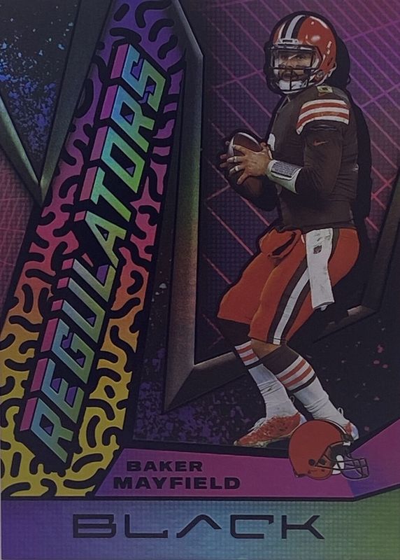 The top trending card in 2021 Black is currently Baker Mayfield 2021 Black #R-21 Regulators /(SSP).
