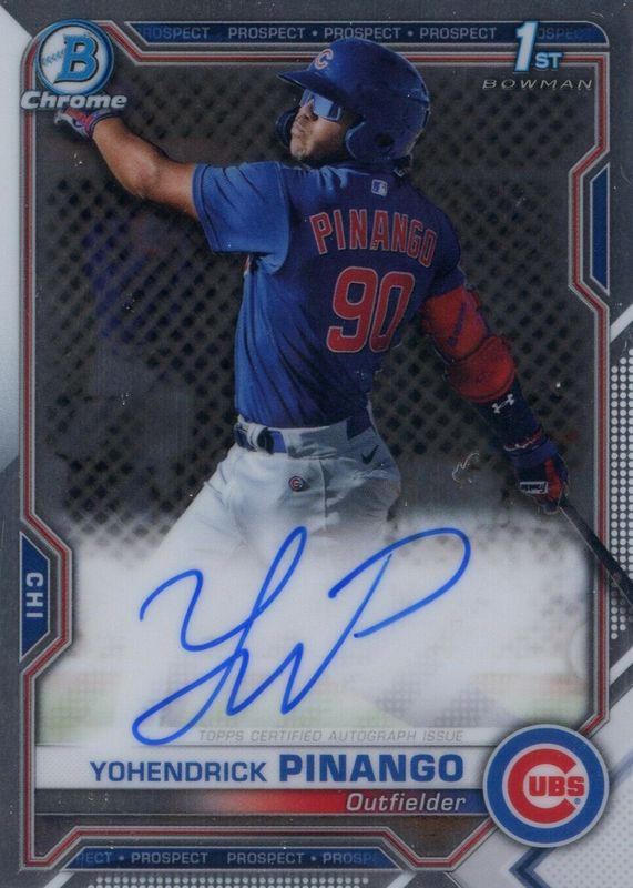 The top trending card in 2021 Bowman Chrome is currently Yohendrick Pinango 2021 Bowman Chrome #CPA-YP Prospect Auto (1st).