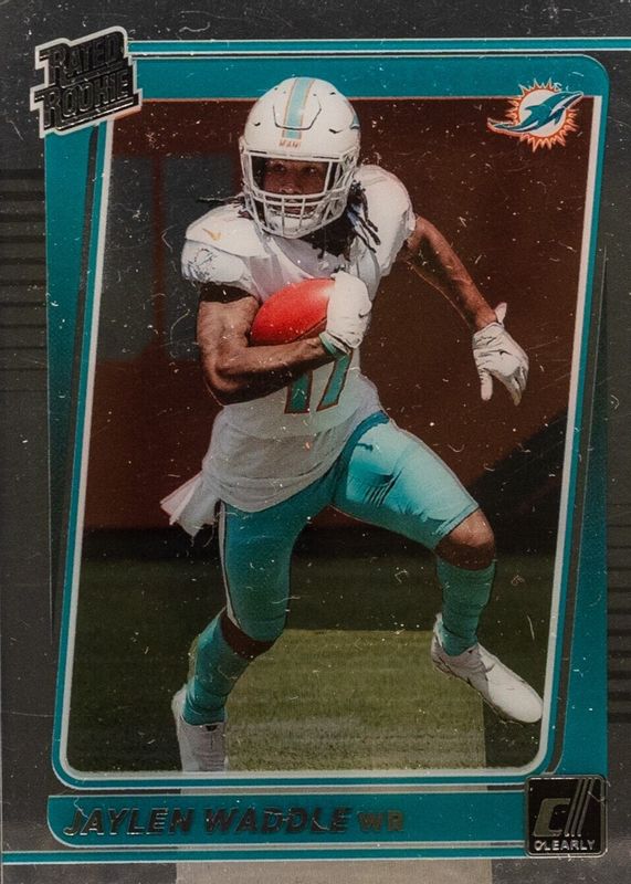 The top trending card in 2021 Clearly Donruss is currently Jaylen Waddle 2021 Clearly Donruss #64 Base.