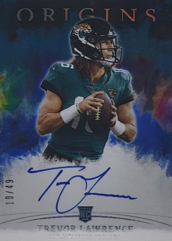 The top trending card in 2021 Origins is currently Trevor Lawrence 2021 Origins #RA-TL Rookie Autographs - Blue /49.