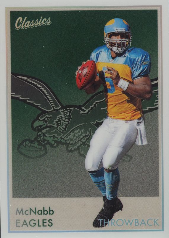 The top trending card in 2022 Classics is currently Donovan McNabb 2022 Classics #TC-26 Team Colors Throwback Edition /(SSP).