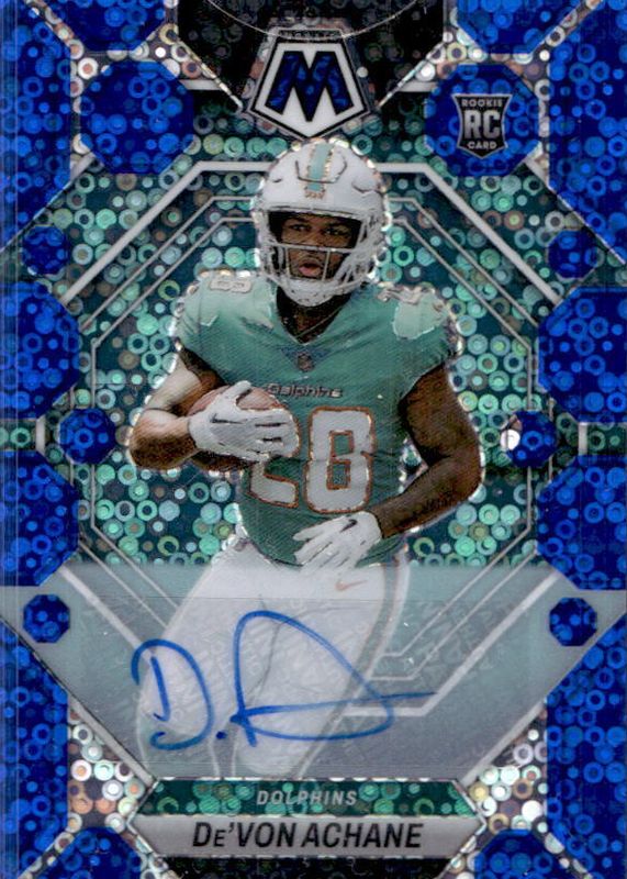 The top trending card in 2023 Mosaic is currently De'Von Achane 2023 Mosaic #312 Rookie Autographs - No Huddle Blue.