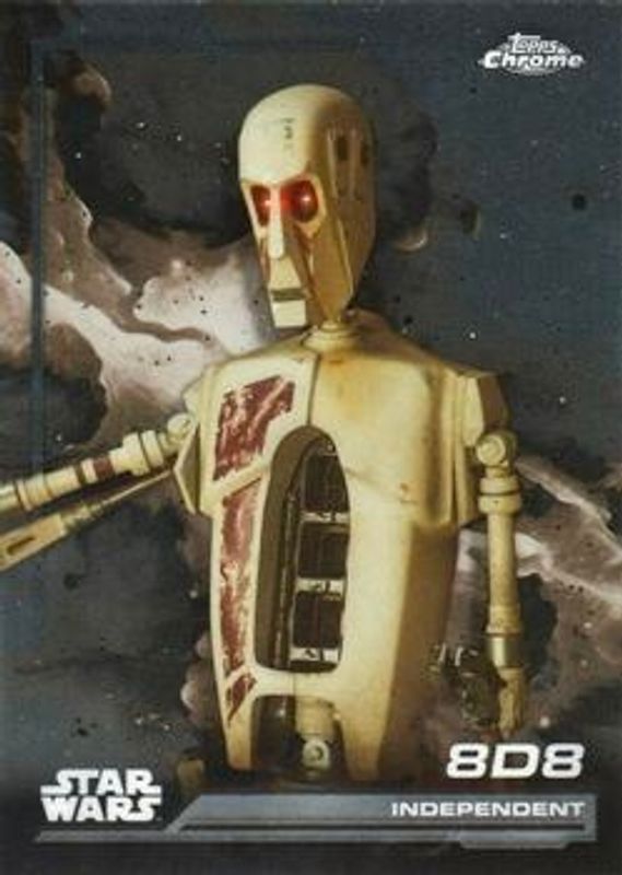 The 8D8 2024 Topps Chrome Star Wars #23 Base card is 1 of 24 8D8's card variations in the 2024 Topps Chrome Star Wars set being tracked by Sports Card Investor, including Blue Blaster Pulsar Refractor, Costco Super Box, Costco Super Box Refractor, Rainbow Refractor, and Red Blaster RayWave Refractor.