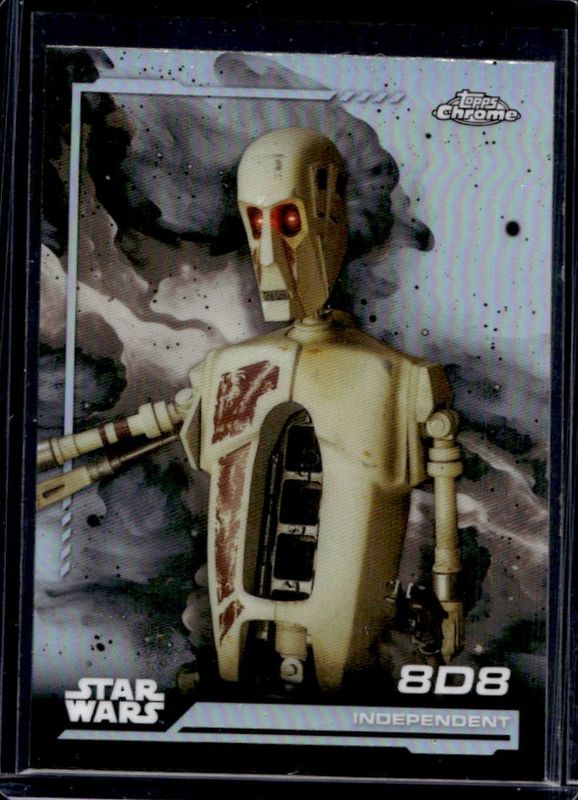 The 8D8 2024 Topps Chrome Star Wars #23 Rainbow Refractor card is 1 of 24 8D8's card variations in the 2024 Topps Chrome Star Wars set being tracked by Sports Card Investor, including Base, Blue Blaster Pulsar Refractor, Costco Super Box, Costco Super Box Refractor, and Red Blaster RayWave Refractor.
