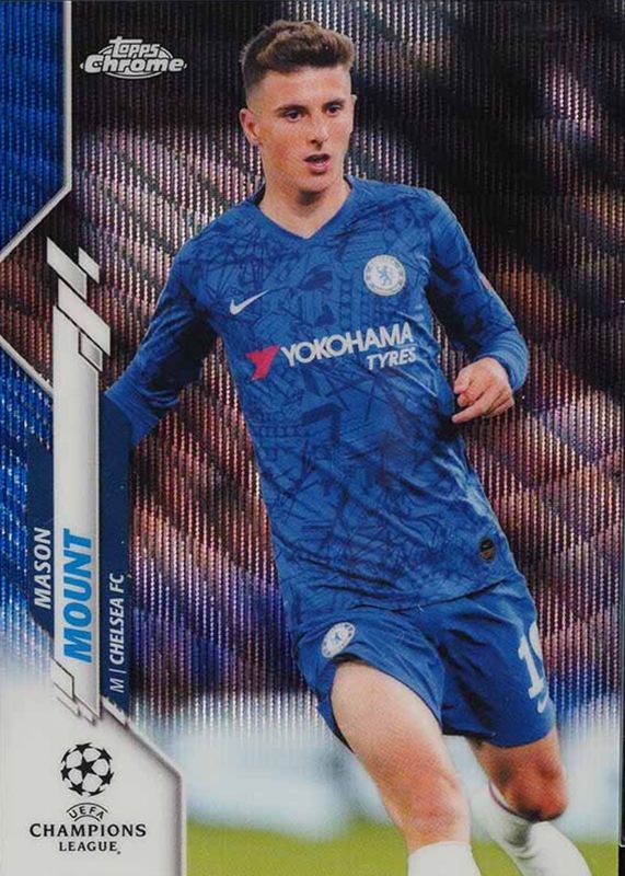 Mason Mount's Soccer cards are available in at least 122 sets. Mason Mount's biggest 7-day price movers are 2019 Topps Chrome UEFA Champions League #30 Blue Wave Refractor /75, 2022 Prizm World Cup #5 Manga /(SSP), and 2024 Prizm Premier League #140 Purple.