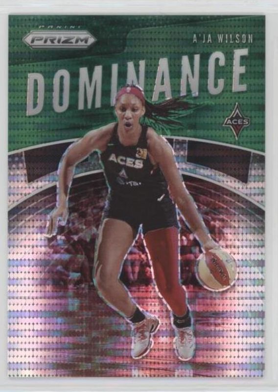 The A'ja Wilson 2020 Prizm WNBA #18 Green Pulsar /25 card is 1 of 67 A'ja Wilson's card variations in the 2020 Prizm WNBA set being tracked by Sports Card Investor, including Base, Green, Green Ice, Hyper, and Ice.