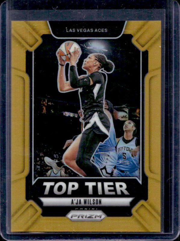 The A'ja Wilson 2024 Prizm WNBA #1 Top Tier - Gold /10 card is 1 of 66 A'ja Wilson's card variations in the 2024 Prizm WNBA set being tracked by Sports Card Investor, including Base, Blue Velocity, Checkerboard, Green, and Ice.