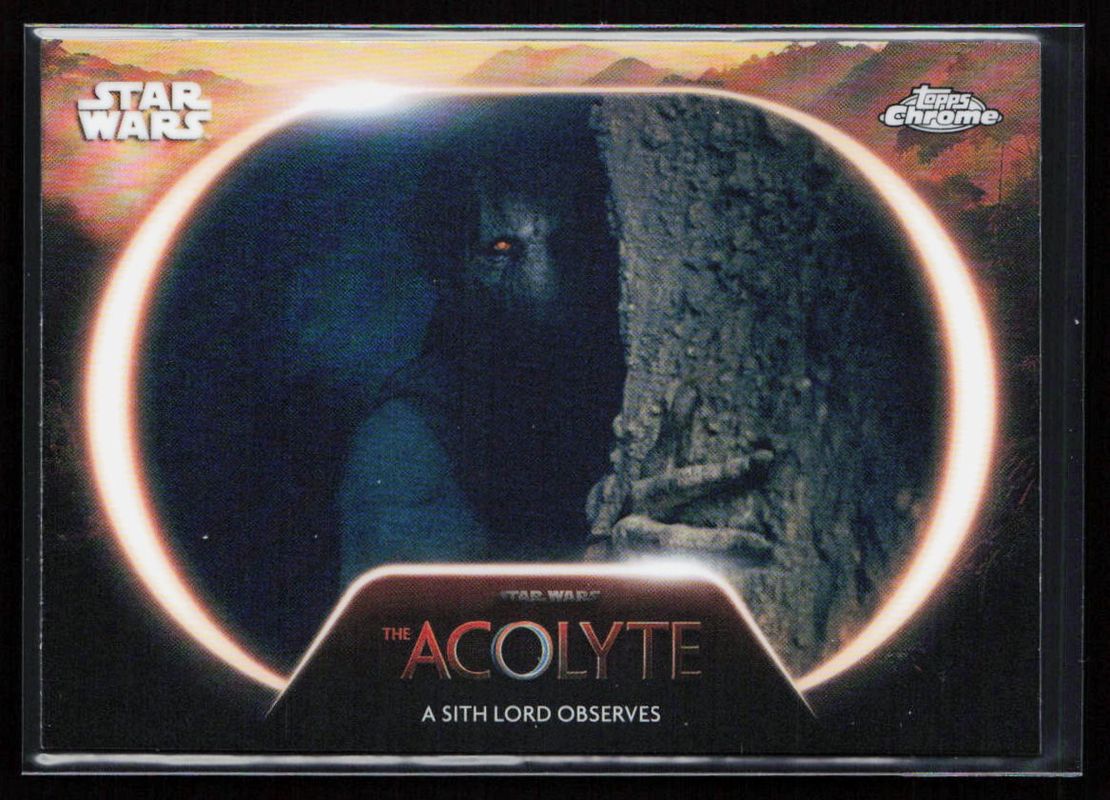 The A Sith Lord Observes 2025 Topps Chrome Star Wars #AC-21 Acolyte card is 1 of 7 A Sith Lord Observes' card variations in the 2025 Topps Chrome Star Wars set being tracked by Sports Card Investor, including Acolyte - Kashyyyk Green Refractor /99, Acolyte - Gold Refractor /50, Acolyte - Rebel Orange Orange Refractor /25, Acolyte - Mustafar Black Refractor /10, and Acolyte - Dathomir Red Refractor /5.