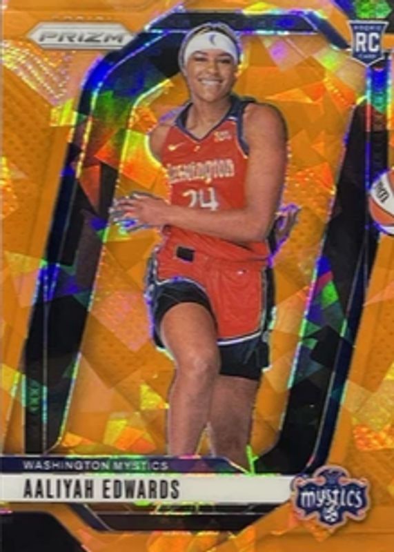 The Aaliyah Edwards 2024 Prizm WNBA #142 Rookie Variation - Orange Ice card in Raw condition has moved down -$0.01 (-1.0%) in the last 30 days and was last sold for $0.99 .
