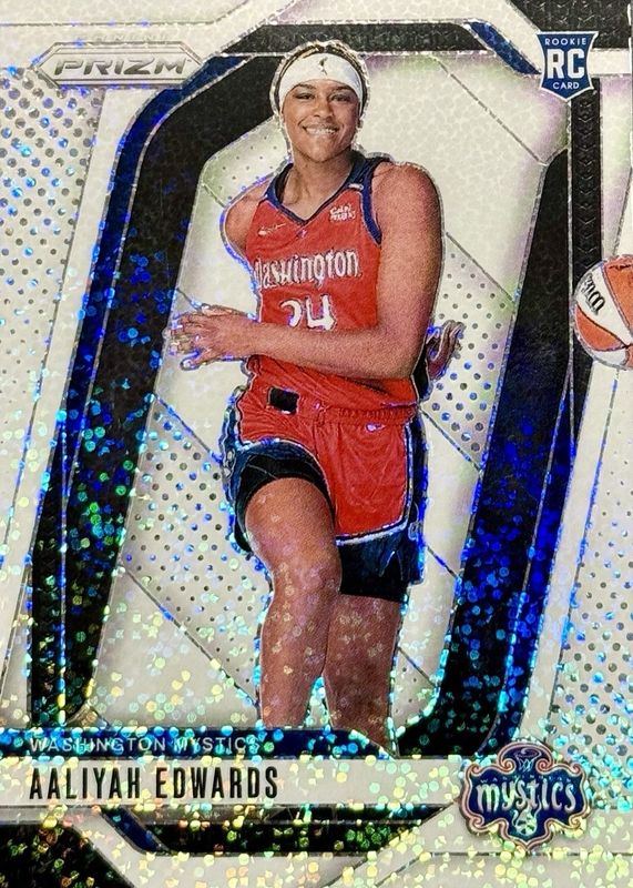 The Aaliyah Edwards 2024 Prizm WNBA #142 Rookie Variation - White Sparkle /(SSP) card in Raw condition has not changed in price in the last 30 days and was last sold for $42.00 .