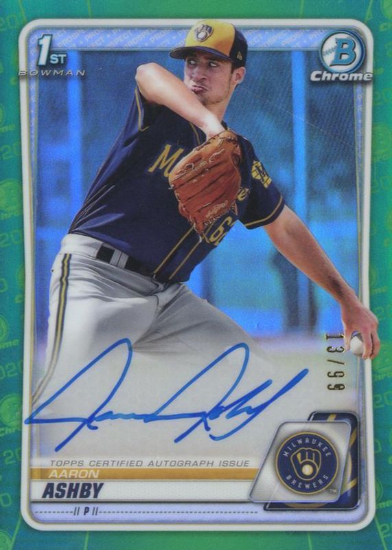 2020 Bowman Chrome Aaron Ashby Green Refractor 1st Prospect Auto #97/99 Brewers