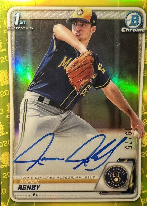 Best Prices Available For Sale of Aaron Ashby 2020 Bowman #CPA-AA Chrome Prospect Auto - Yellow Refractor /75 (1st)