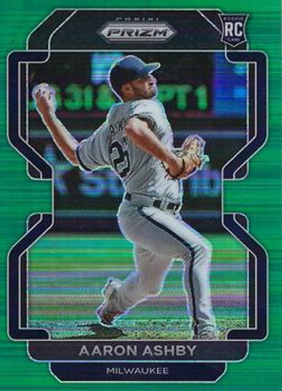 The Aaron Ashby 2022 Prizm #49 Green Rookie card is 1 of 69 Aaron Ashby's card variations in the 2022 Prizm set being tracked by Sports Card Investor, including Base, Blue, Blue Velocity, Carolina Blue, and Cosmic Haze.