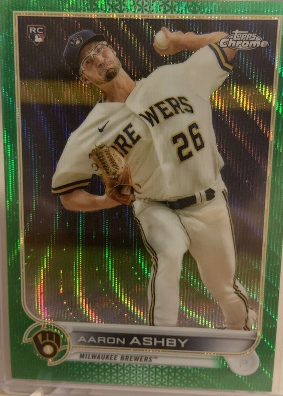 2022 Topps Chrome Aaron Ashby Rookie #80 Green Wave Refractor Brewers RC 24/99
