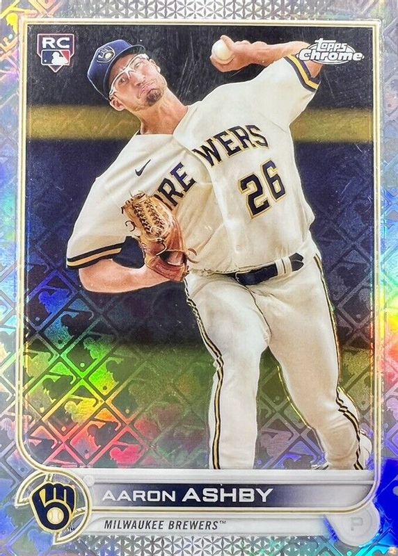 2022 Topps Chrome Rookie Logofractor Aaron Ashby RC Milwaukee Brewers