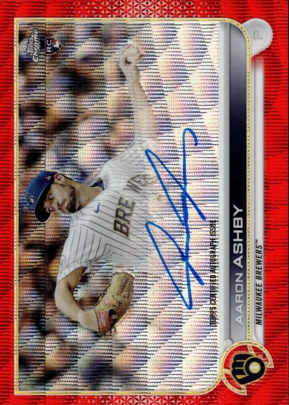 The Aaron Ashby 2022 Topps Chrome #RA-AA Rookie Auto - Red Wave Refractor /5 card in Raw condition has not changed in price in the last 30 days and was last sold for $166.50 .