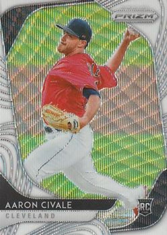 The Aaron Civale 2020 Prizm #211 White Wave Rookie card is 1 of 62 Aaron Civale's card variations in the 2020 Prizm set being tracked by Sports Card Investor, including Base, Blue, Carolina Blue, Cosmic Haze, and Green.