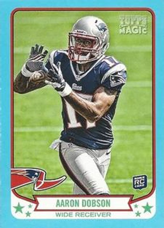 The Aaron Dobson 2013 Topps Magic #68 Mini Blue Border Rookie card is 1 of 13 Aaron Dobson's card variations in the 2013 Topps Magic set being tracked by Sports Card Investor, including Base, Mini, Mini Black Border, Mini Green Border, and Mini Orange Border.