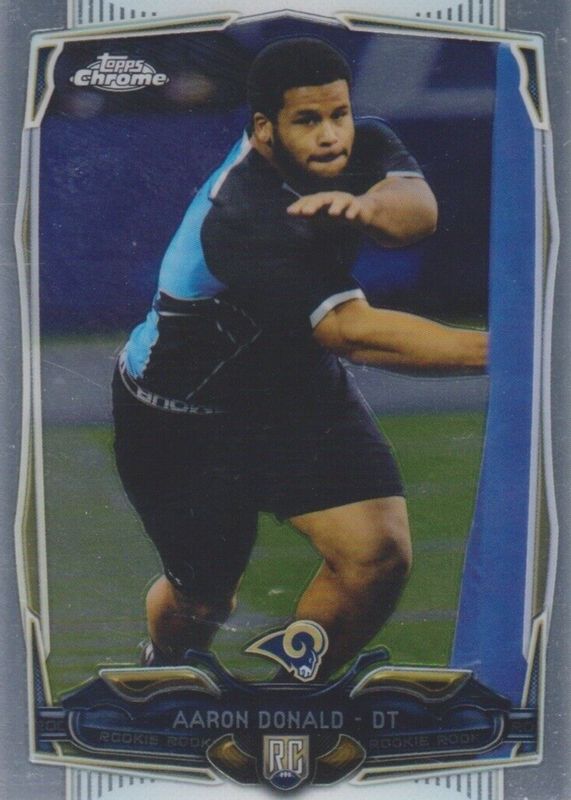 The Aaron Donald 2014 Topps Chrome #175 Base Rookie card in Raw condition has moved up $8.00 (+114%) in the last 30 days and was last sold for $15.00 .