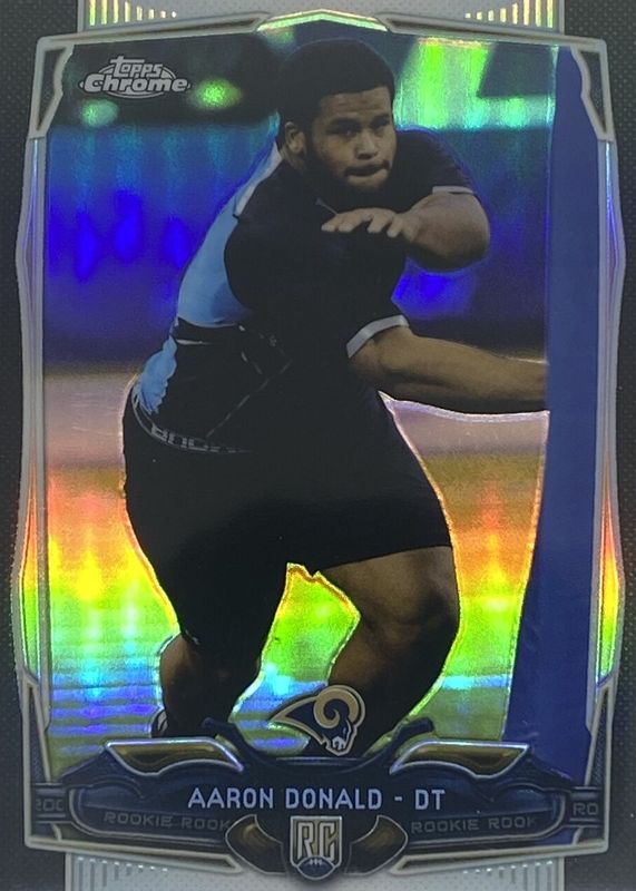 This card is 1 of 30 Aaron Donald's card variations in the 2014 Topps Chrome set being tracked by Sports Card Investor, including Base, Printing Plates Black /1, Printing Plates Cyan /1, Printing Plates Magenta /1, and Printing Plates Yellow /1.