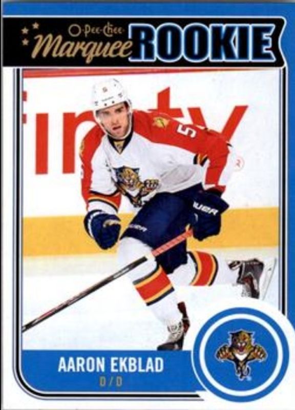 The Aaron Ekblad 2014 Upper Deck #U30 2014 O-Pee-Chee Update Rookie card is 1 of 21 Aaron Ekblad's card variations in the 2014 Upper Deck set being tracked by Sports Card Investor, including Young Guns Base, Young Guns Canvas, Young Guns - Acetate, Young Guns - UD Exclusives /100, and Young Guns - UD High Gloss /10.