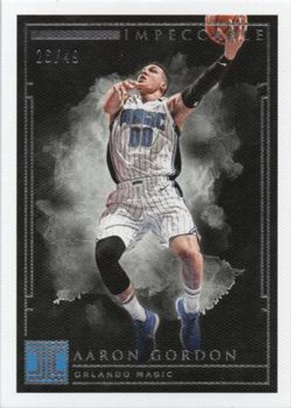 The Aaron Gordon 2018 Impeccable #50 Silver /49 card is 1 of 7 Aaron Gordon's card variations in the 2018 Impeccable set being tracked by Sports Card Investor, including Base /99, Gold /35, Holo Silver /25, Holo Gold /10, and Platinum /1.