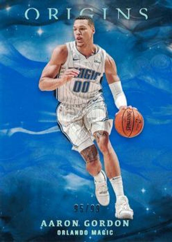 The Aaron Gordon 2019 Origins #68 Blue /99 card is 1 of 17 Aaron Gordon's card variations in the 2019 Origins set being tracked by Sports Card Investor, including Base, Red, Orange /75, Pink /35, and Turquoise /25.