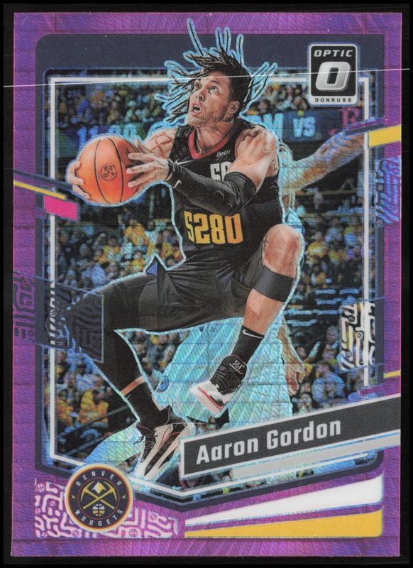 The Aaron Gordon 2023 Optic #155 Hyper Pink card is 1 of 55 Aaron Gordon's card variations in the 2023 Optic set being tracked by Sports Card Investor, including Base, Blue Velocity, Checkerboard, Choice Red & Green, and Fast Break.