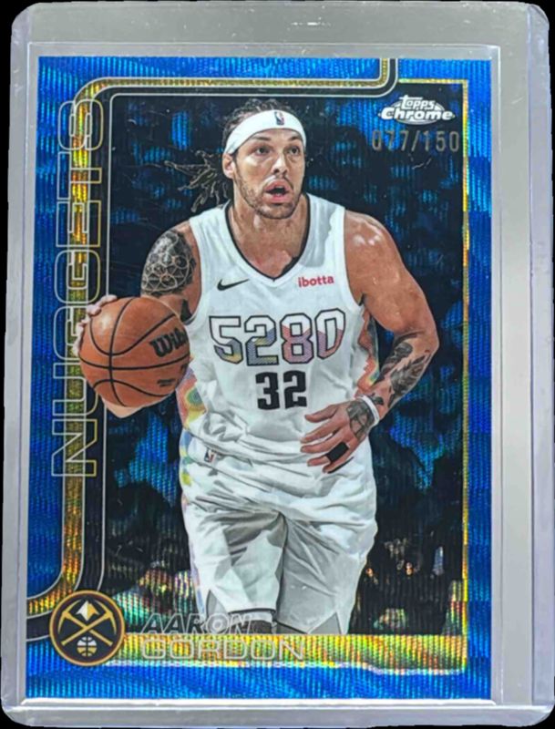 The Aaron Gordon 2025 Topps Chrome #100 Blue Wave Refractor /150 card is 1 of 80 Aaron Gordon's card variations in the 2025 Topps Chrome set being tracked by Sports Card Investor, including Base, Basketball Refractor, Box Set Refractor, Lightboard Logo Refractor, and Negative Refractor.
