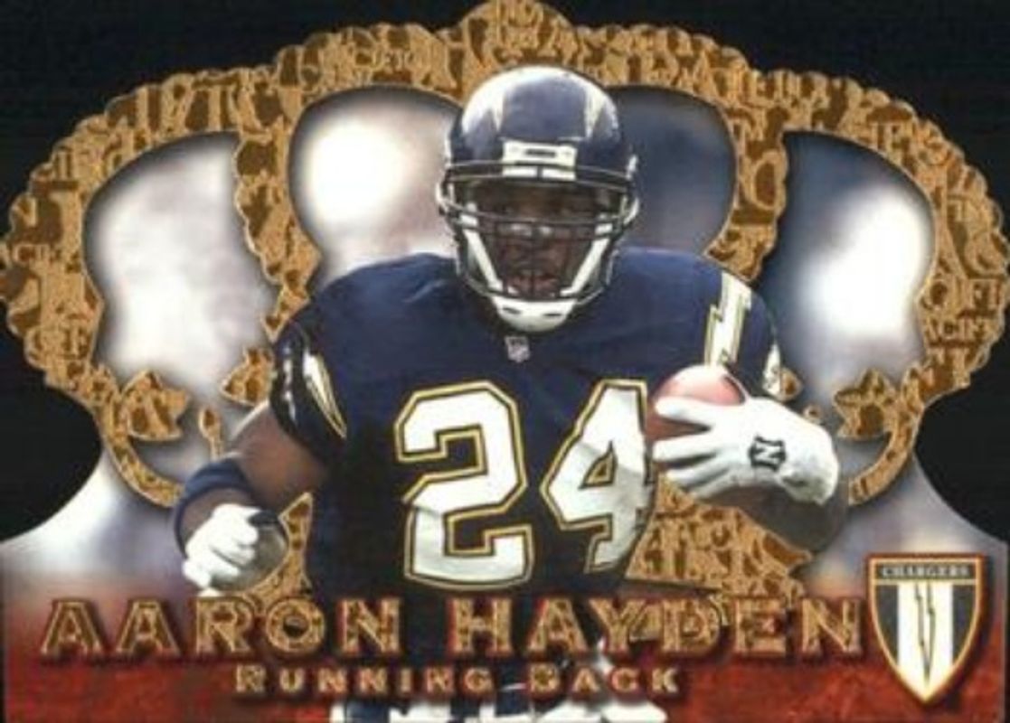 The Aaron Hayden 1996 Pacific Crown Royale #CR-6 Base card is 1 of 4 Aaron Hayden's card variations in the 1996 Pacific Crown Royale set being tracked by Sports Card Investor, including Blue, Silver, and NFL Regime.