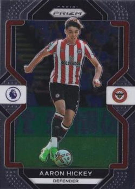 The Aaron Hickey 2022 Prizm Premier League #41 Base card is 1 of 50 Aaron Hickey's card variations in the 2022 Prizm Premier League set being tracked by Sports Card Investor, including Breakaway, Choice Blue Yellow Green, Green Ice, Green Pulsar, and Hyper.
