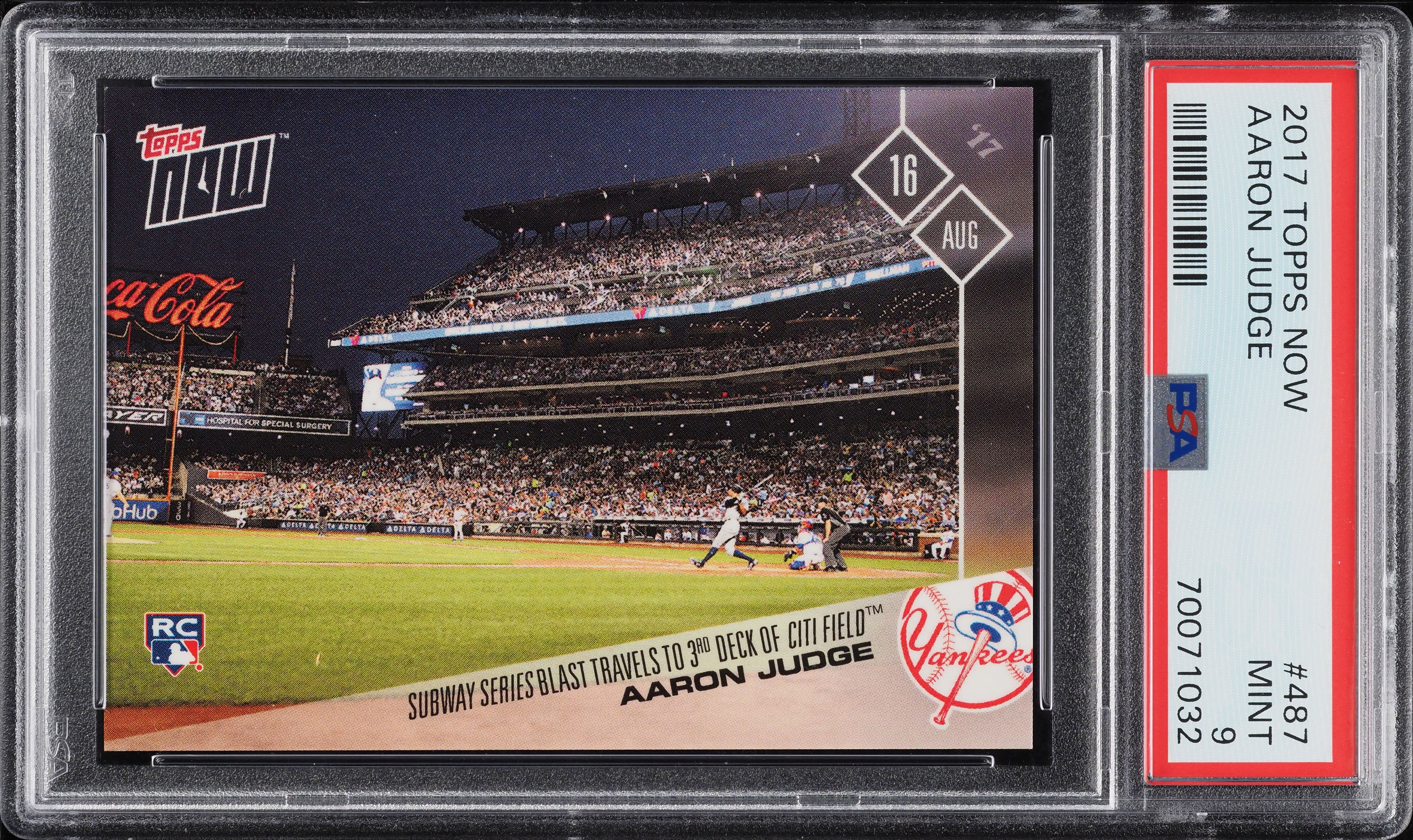 The Aaron Judge 2017 Topps Now #487 Base (Print Run: 3,088) Rookie card in Raw condition has moved up $8.50 (+131%) in the last 30 days and was last sold for $15.00 .
