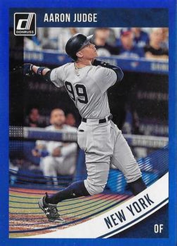 The Aaron Judge 2018 Donruss #148 Holo Blue card is 1 of 69 Aaron Judge's card variations in the 2018 Donruss set being tracked by Sports Card Investor, including #148 Base, #253b Base, #253 Base, #19 Diamond Kings, and Blank Back.