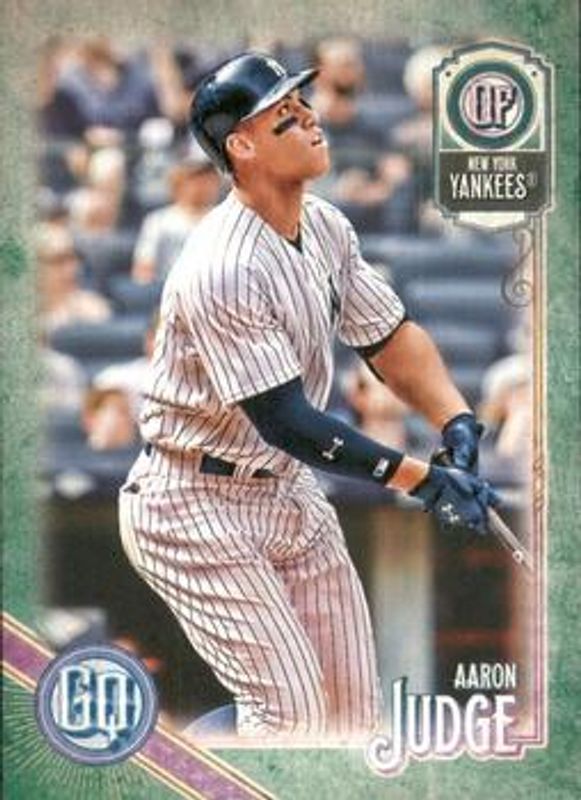 The Aaron Judge 2018 Topps Gypsy Queen #300 Green card is 1 of 49 Aaron Judge's card variations in the 2018 Topps Gypsy Queen set being tracked by Sports Card Investor, including #300b Base, #300c Base, #300 Base, #300 Bazooka Back, and #300 GQ Logo Swap.