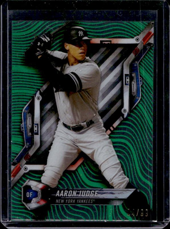 The Aaron Judge 2018 Topps High Tek #HT-AJ Green Rainbow Foil /99 card is 1 of 35 Aaron Judge's card variations in the 2018 Topps High Tek set being tracked by Sports Card Investor, including Base, Galactic Diffractor, Magma Diffractor, Orbit Diffractor, and Pattern 2.
