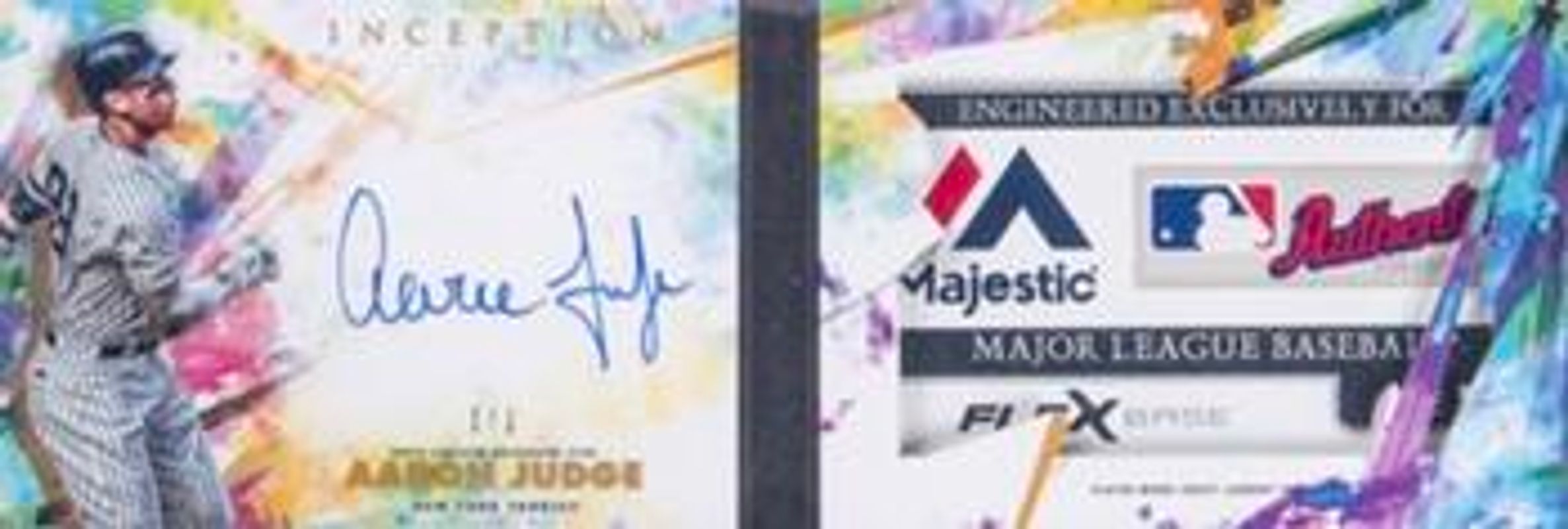 Aaron Judge 2020 Topps Inception #IMLP-AJ Autographed MLB Silhouetted Batter Logo Patch Book /1 SGC 9 Price Guide