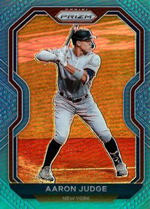 The Aaron Judge 2021 Prizm #212 Carolina Blue card is 1 of 104 Aaron Judge's card variations in the 2021 Prizm set being tracked by Sports Card Investor, including Base, Blue, Blue Velocity, Cosmic Haze, and Giraffe.