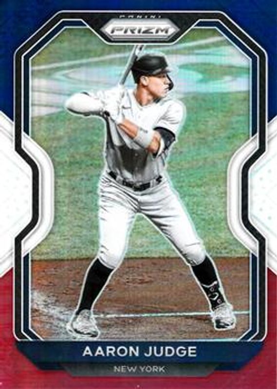 The Aaron Judge 2021 Prizm #212 Red White Blue card is 1 of 104 Aaron Judge's card variations in the 2021 Prizm set being tracked by Sports Card Investor, including Base, Blue, Blue Velocity, Carolina Blue, and Cosmic Haze.