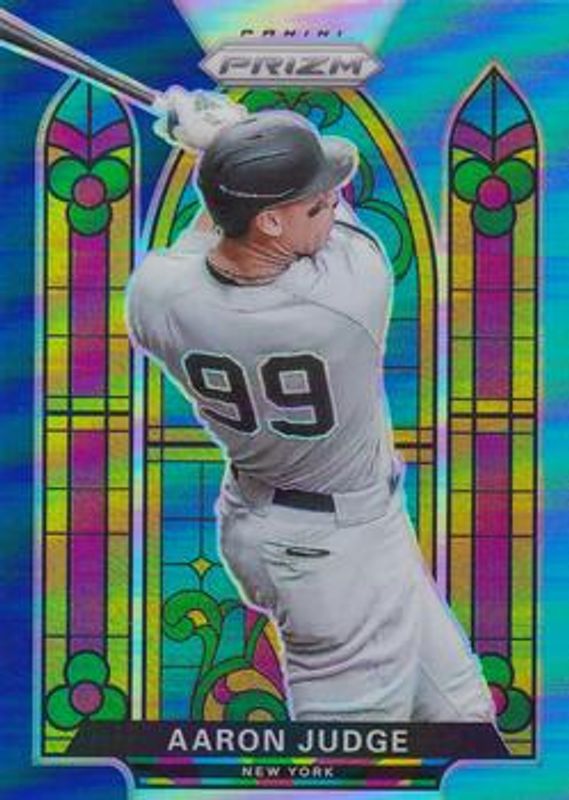 The Aaron Judge 2021 Prizm #SG-5 Stained Glass Nave Blue-Carolina Blue - Carolina Blue card is 1 of 104 Aaron Judge's card variations in the 2021 Prizm set being tracked by Sports Card Investor, including Base, Blue, Blue Velocity, Carolina Blue, and Cosmic Haze.