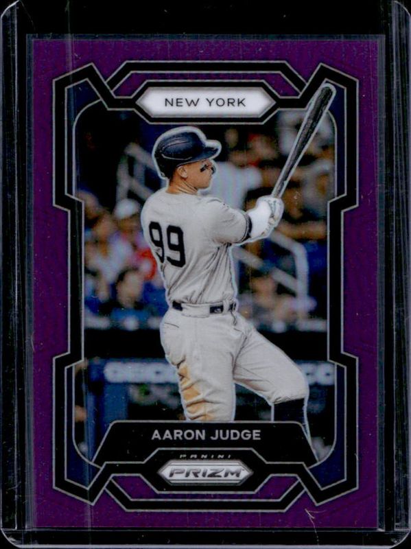 The Aaron Judge 2024 Prizm #29 Purple /99 card is 1 of 31 Aaron Judge's card variations in the 2024 Prizm set being tracked by Sports Card Investor, including Base, Blue Ice, Green, Green Ice, and Pink Ice.