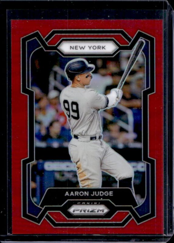 The Aaron Judge 2024 Prizm #29 Red /299 card is 1 of 31 Aaron Judge's card variations in the 2024 Prizm set being tracked by Sports Card Investor, including Base, Blue Ice, Green, Green Ice, and Pink Ice.