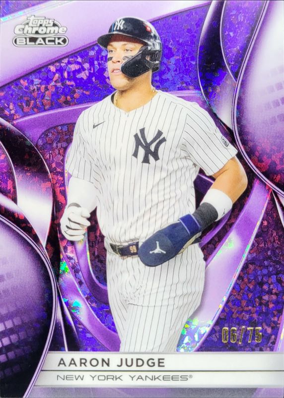 The Aaron Judge 2025 Topps Chrome Black #99 Purple Mini Diamond Refractor /75 card is 1 of 24 Aaron Judge's card variations in the 2025 Topps Chrome Black set being tracked by Sports Card Investor, including Base, Refractor /199, Blue Lava Refractor /150, Blue Refractor /150, and Green Refractor /99.